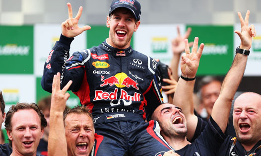 El equipo Red Bull pagará a Sebastian Vettel una prima de tres millones de euros por ser Campeón del Mundo, además, cada empleado del equipo cobrará 12.000 euros extra como premio por haber conseguido el tercer doblete consecutivo.