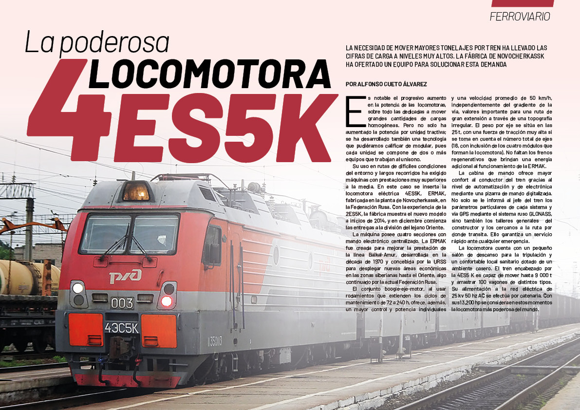 La necesidad de mover mayores tonelajes por tren ha llevado las cifras de carga a niveles muy altos. La fábrica de Novocherkassk ha ofertado un equipo para solucionar esta demanda: la poderosa locomotora 4ES5 K.