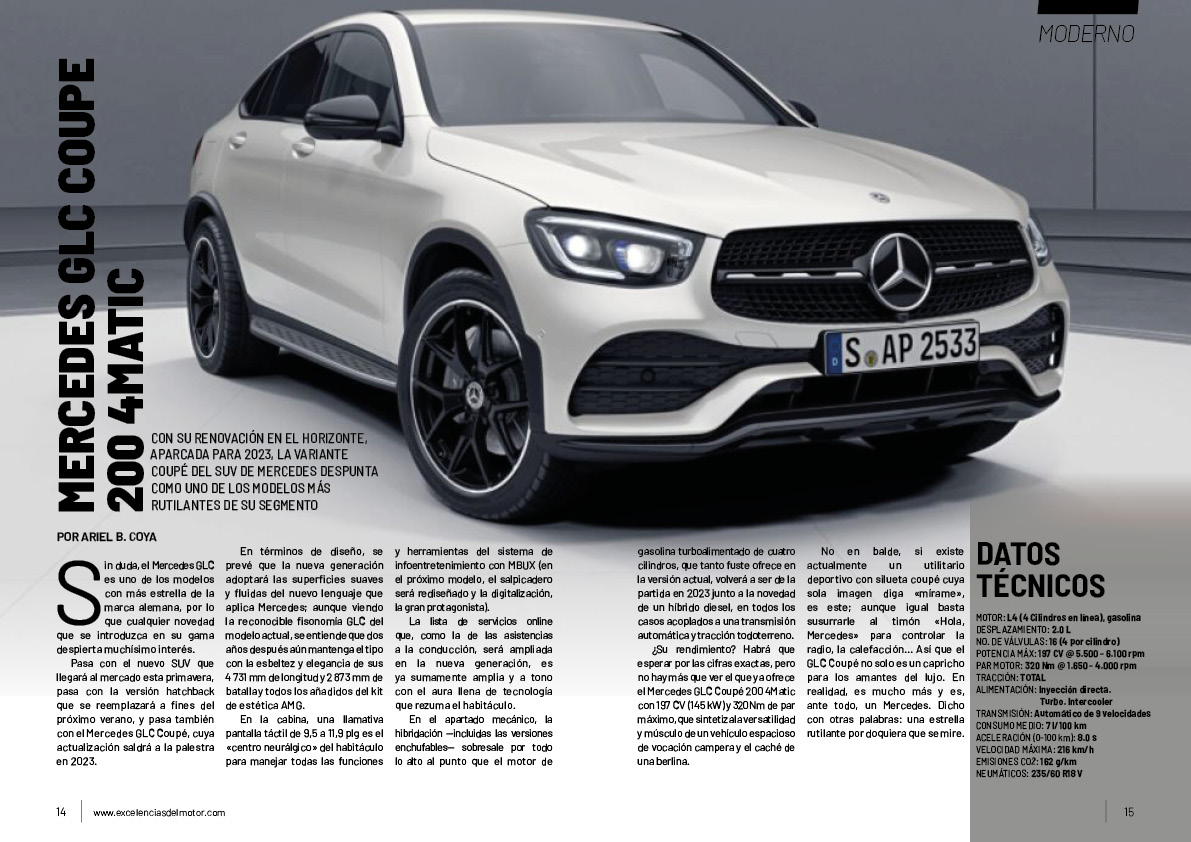 Por su parte, con su renovación en el horizonte, aparcada para 2023, la variante coupé del SUV de Mercedes despunta como uno de los modelos más rutilantes de su segmento: el Mercedes GLC Coupe 200 4MATIC. Con tales aires renovadores llega también el Porsche Taycan Turbo S Sport Turismo, el último de tres fabulosos modelos, por primera vez eléctricos, de la marca alemana de automóviles Porsche, llega para superar a sus antecesores: Taycan 4s y Taycan Cross.