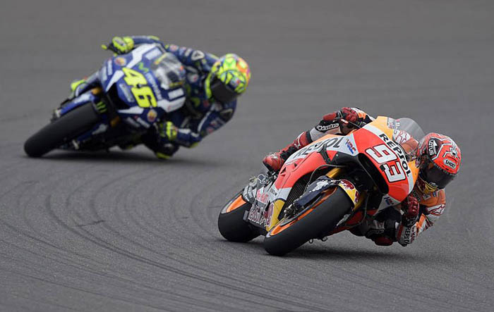 Llegó el momento de parar. Maverick y Iannone lo hicieron antes. El Doctor y el leridano entraron a la vez. Casi tocándose. Marc fue más rápido gracias a su salto. Reingresó delante. Además, Rabat, que no había pasado por boxes aún, se coló entre él y Rossi. Eso es un amigo. El de Cervera no dudó. Puso una marcha más y tiró a tope.