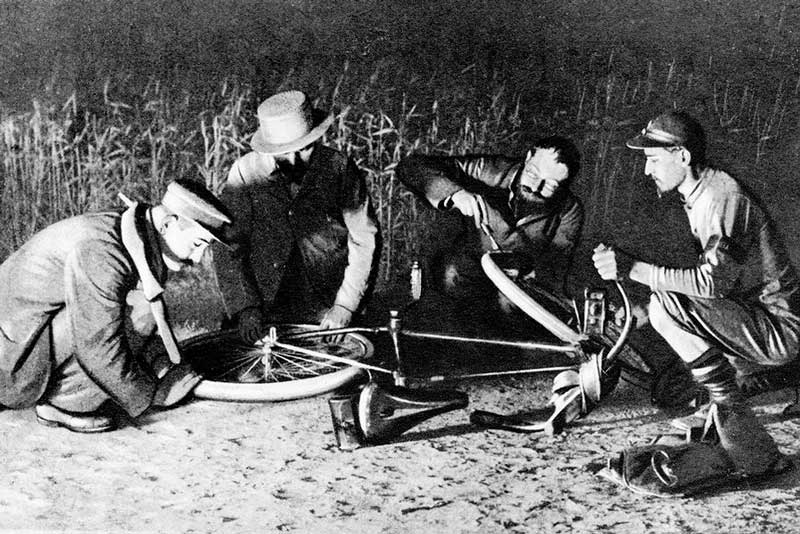 Hay que decir que no todas las bicicletas de entonces tenían llantas inflables. Andaba sobre ruedas de madera y las mejores con zunchos de goma, cuya fricción con el camino hacían muy difícil en avance. La llanta inflable resolvió este problema y la bicicleta se hizo más cómoda y mucho mejor medio de transporte. Tanto dan y gozan los hermanos Michelin con la bicicleta del inglés que terminan por volverla a ponchar.