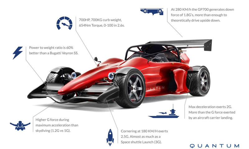 Desde Australia, de la mano de Quantum Performance Vehicle, nos llega un deportivo ligero, radical, capaz de equilibrar la balanza de la relación peso/potencia en un 1:1 tras el que se esconde todo un tropel de 700 caballos y, claro, 700 kg. Toda una suerte de Fórmula 1 biplaza, un Ariel Atom vitaminado, que bajo la denominación de Quantum GP700 nos ofrece lo que bien podría ser la máquina definitiva de circuito.