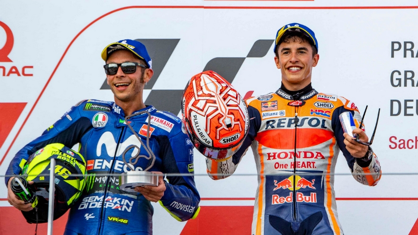 Así quedó servida la mesa para el Gran Premio de San Marino, un duelo al que poco le duró el morbo. Viñales defendió su privilegio en la partida, mientras que Quartararo, Franco Morbidelli (Yamaha) y Márquez le seguían en fila. La KTM de Pol Esparragó, que partía desde la segunda posición de la parrilla, bajaba al quinto puesto y Rossi no aguantaba ante la presión de Alex Rins (Suzuki).