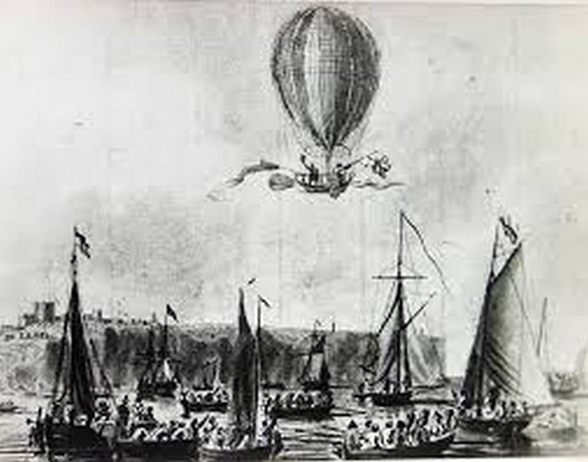 1785: El aeronauta francés Jean Pierre Blanchard y el estadounidense John Jeffries realizan la primera travesía en globo aerostático del Canal de la Mancha. Se realizó por el estrecho de Calais, la parte más angosta del Canal de la Mancha, de 33km, a bordo de un globo aerostático. Volaron desde el castillo de Dover (Inglaterra) hasta Guînes (Francia), en dos horas y media.